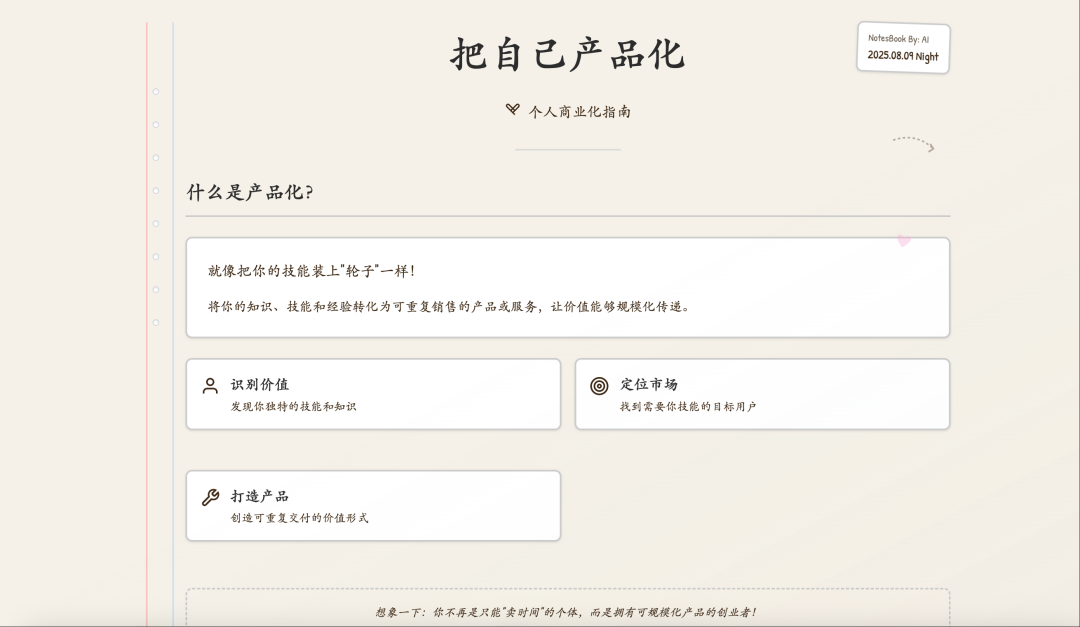 设计风格风格:手绘笔记本,背景#F5F1E8(米色),文字#3D2914(深棕)。