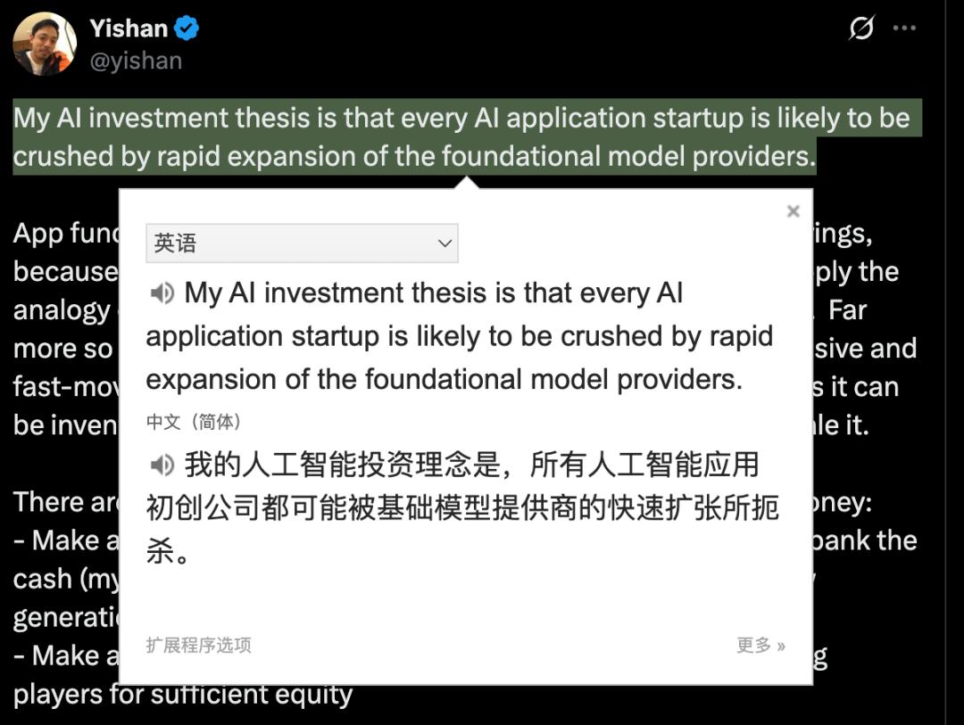 几乎所有 AI 应用层初创公司都很可能被基础模型提供商快速碾压,这不是传统的”大公司打败小公司”的故事,而是一个全新的结构性问题。